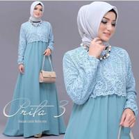 Model baju gamis brokat untuk orang gemuk agar tampak modis.
