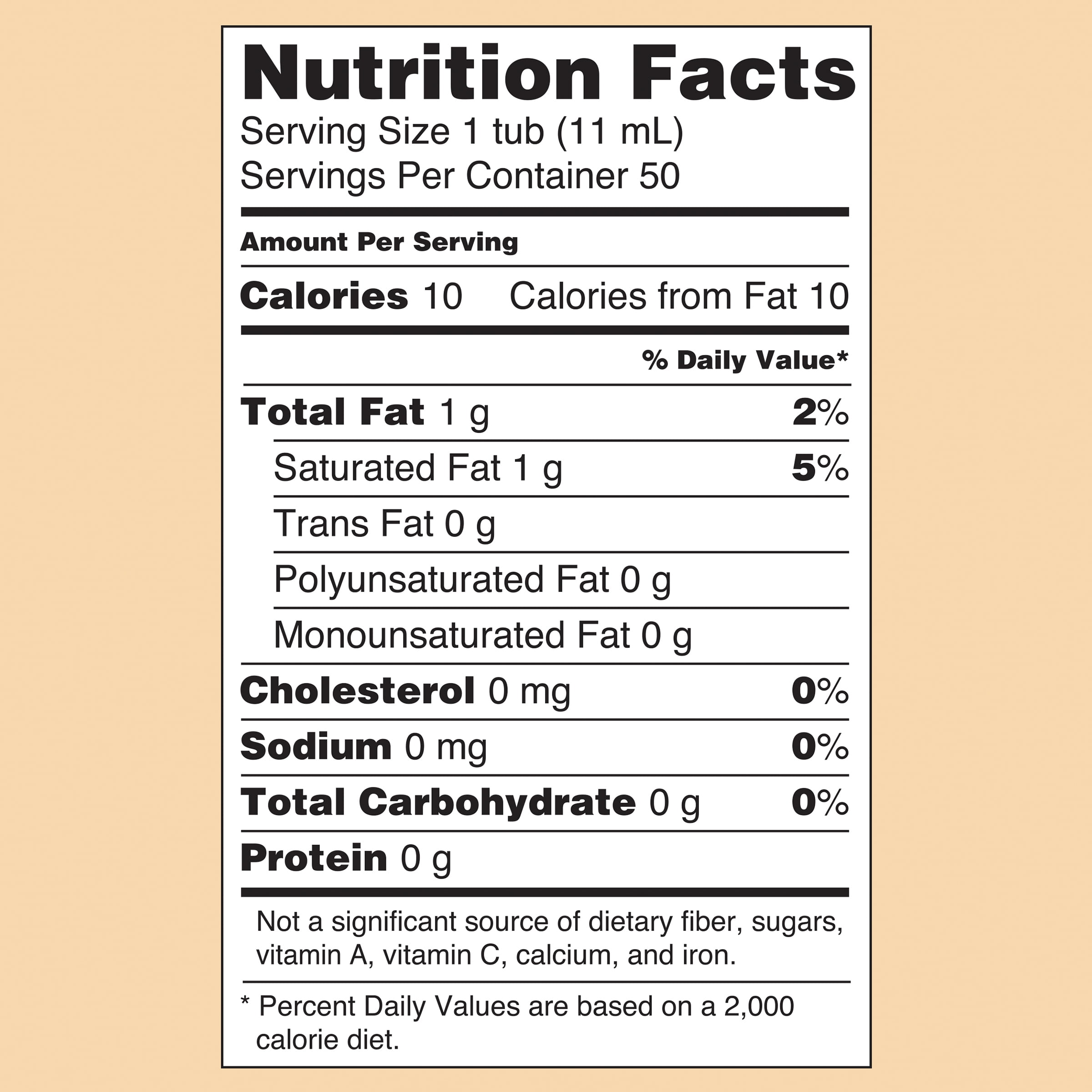 1 tub (11 ml) nutrition facts.